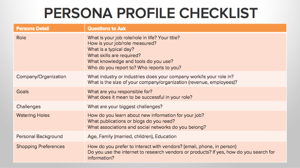 The best way to get information on your buyers is to ask them. HubSpot has a great list of questions (below) which you can tailor to your customers. Surveys are a solid way of getting information from your customers too.
